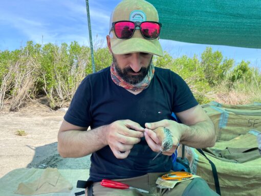 Entre las aves que marcaron su camino, hay una que ocupa un lugar especial: el playero rojizo. “Lo tengo tatuado. Me vinculó con gente hermosa, tuve la suerte de ver un ejemplar que había anillado en Estados Unidos y reconocerlo después acá, en Gallegos. Con el playero rojizo tengo mucha historia detrás”, confiesa.